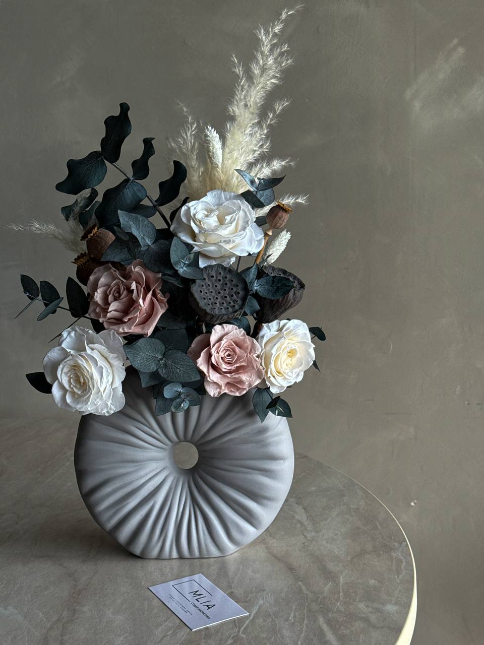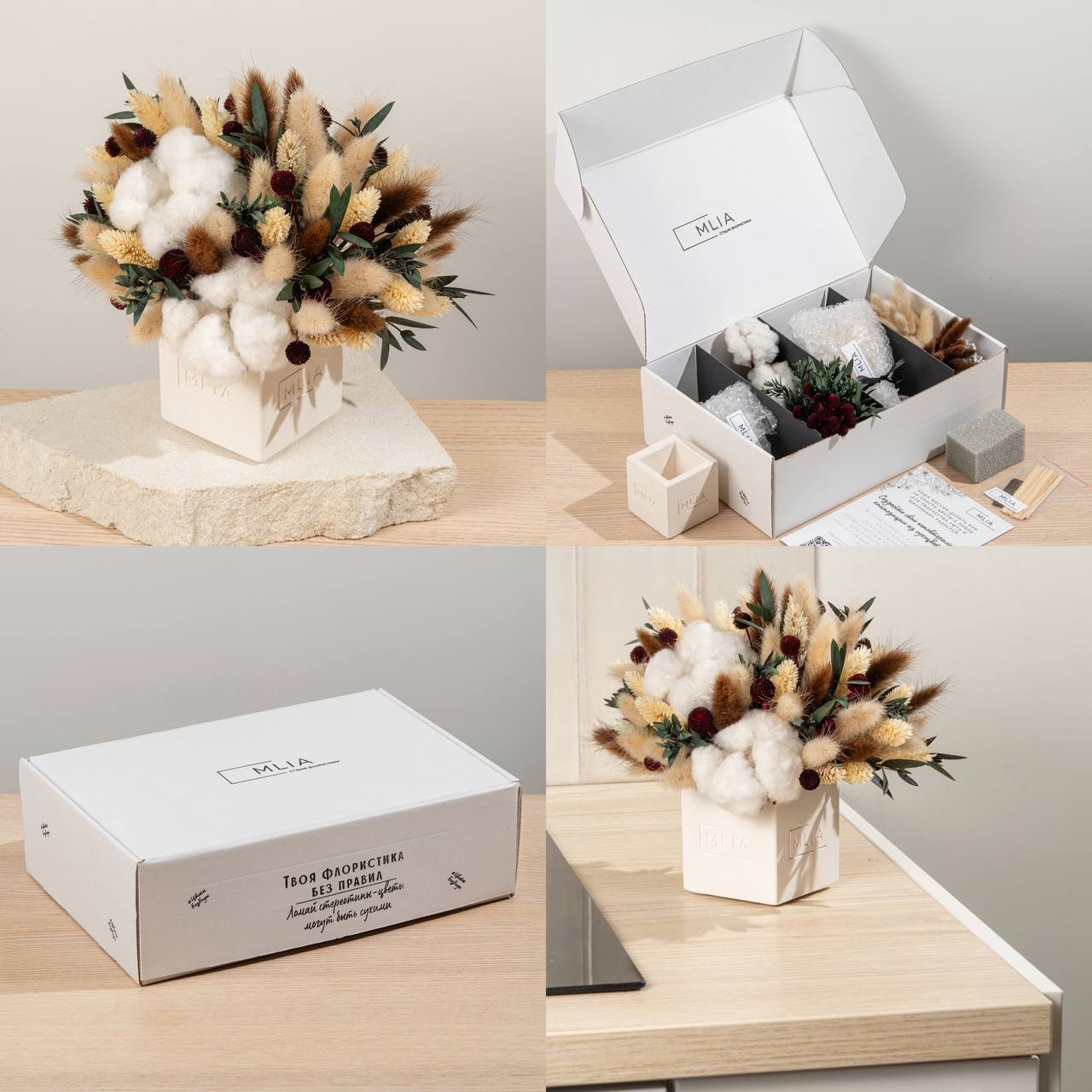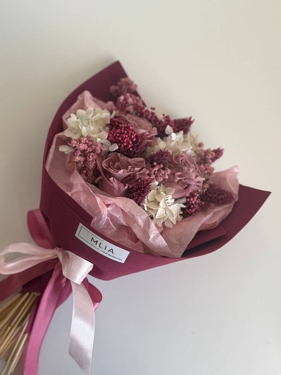 Ваш интерьер, наш подход. Создадим композицию из сухоцветов и стабилизированных цветов специально для вас: учтем стиль, колористику и финансовые рамки.